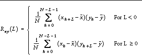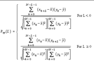 where ` x and ` y are the means of the sample populations x = ( x 0 , x 1 , x 2 , ... , x N-1 ) and y = ( y 0 , y 1 , y 2 , ... , y N-1 ), respectively.