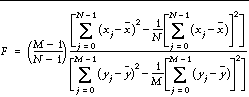The F-statistic formula for sample populations x and y with means ` x and ` y is defined as: